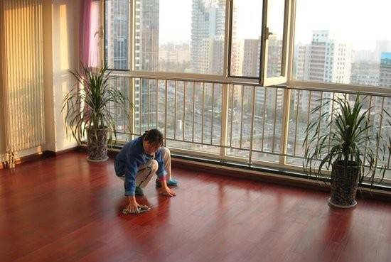 9、 地面的清洗:把所有的做完以后,就是地面的清洗了,地面也要分材质,是木地板的、还是瓷砖的、或是石材的,当分清后就选择专用清洁剂稀释后,开始清洗。最后一道工序做完后,确认无遗留后撤离现场。