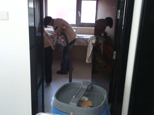 9、 地面的清洗:把所有的做完以后,就是地面的清洗了,地面也要分材质,是木地板的、还是瓷砖的、或是石材的,当分清后就选择专用清洁剂稀释后,开始清洗。地面上的胶渍可用刀片清除,顽固的可用去胶剂处理;最后一道工序做完后,确认无遗留后撤离现场。
