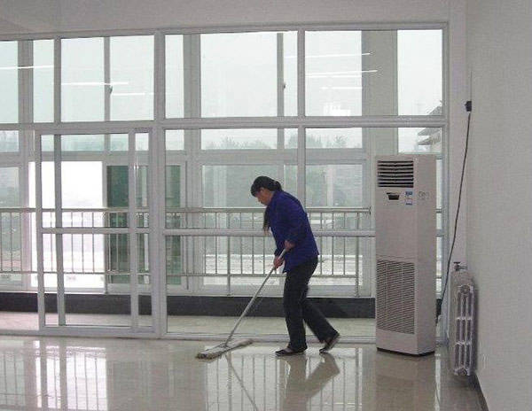 (6)地面:清洁后的地板应该干净、无尘土、无印痕,光洁、明亮。客户验收后,应该再用干净的地拖把脚印擦去。